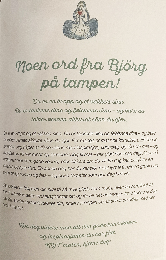• Jeg vil gi kroppen og tarmene mine næringsrikt påfyll og glede.